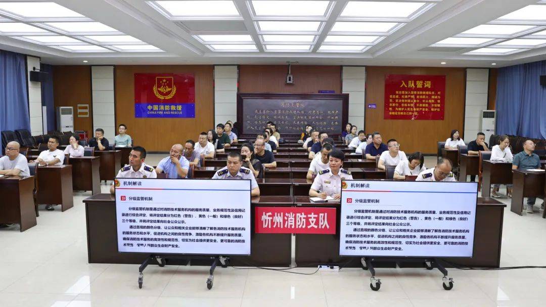为进一步规范消防技术服务机构服务质量,营造优质高效的社会消防技术服务市场环境,6月17日,忻州市消防救援支队召开全市消防技术服务机构和消防职业资格证书专项检查工作动员部署会议。谢业刚支队长出席会议并讲话,支队综合指导科相关人员、各大队全体监督执法干部及全市消防技术服务机构相关人员参加会议,会议由闫晓伟副支队长主持。