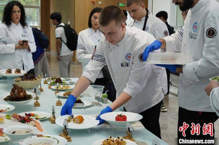 在成果展现场,杭州蟹酿橙、台州食饼筒、丽水杨梅虾球……中塞双方学子以“百县千碗、味美浙江”为主题,共同制作了一桌宴席,包括冷菜、热菜、小吃、雕刻和冷拼的41道菜式,既有浙江本土的地方菜,又有塞尔维亚的传统菜。一道道美味菜肴,既展示了中塞学子的厨艺所学,也彰显了中塞双方热气腾腾的“铁杆情谊”。